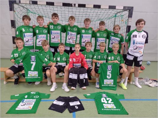Die Jungs der männlichen Jugend C bedanken sich für den neuen Trikotsatz bei den Sponsoren Industrie Konzept und Uropraxis Nord.